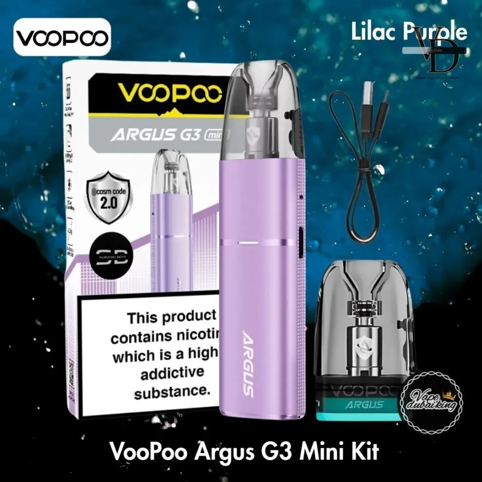 The VooPoo Argus G3 Mini Pod Kit stands out as a top-tier compact pod system solution, offering advanced Argus V2 Pod technology, fast USB-C charging, a comprehensive pod compatibility guide, and 8 stunning color options all in one sleek and portable package. Available at Vape King AE in Dubai, it is backed by fast delivery, competitive pricing, and trusted customer service. Elevate your everyday vaping experience with the elegance and performance of the VooPoo Argus G3 Mini today!
